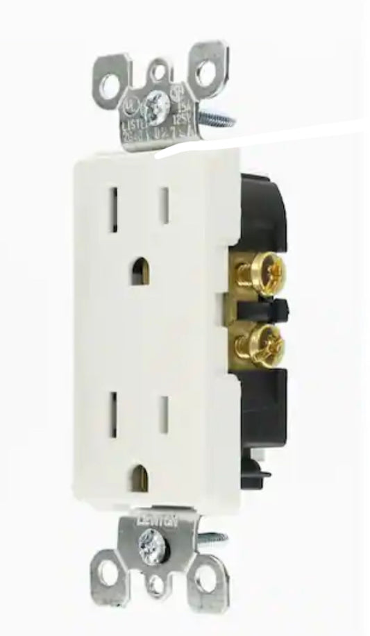 Leviton Decora 15 Amp Residential Grade Grounding Duplex Outlet, White (10-Pack) - Damaged Box