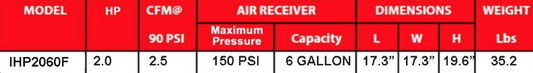 Iron Horse 5 Horse Power 20 Gallon Air Compressor