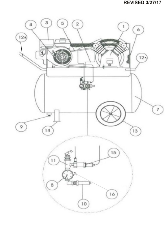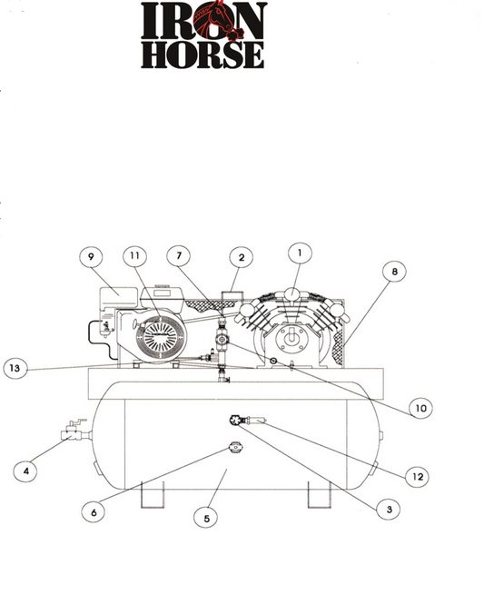 Iron Horse Air Compressor 13 Horsepower Honda Engine 30 Gallon